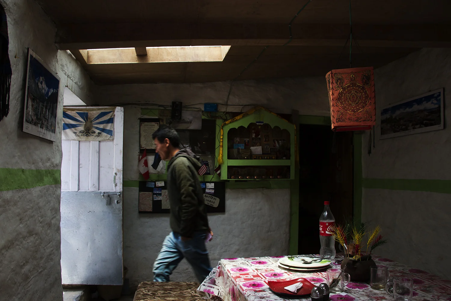 Рассматривать местные кухни — большое удовольствие. Эта кухня новая и не домашняя, в ней мало утвари. Кухня постарше сияет на тебя рядами отполированных ложек, мешалок, кастрюль, ковшиков и чайников, висящих на стенах в таком порядке, что место больше напоминает армию, чем непальское хозяйство. Здесь же чайный домик, он только открылся, со свежей побелкой, новой посудой и без туалета.