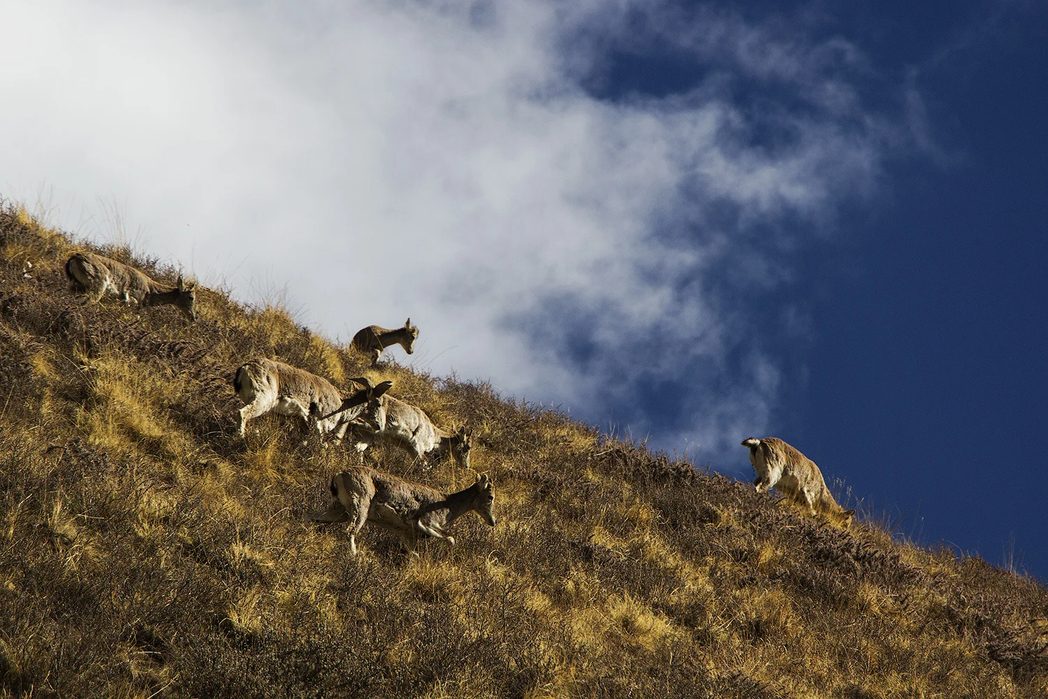 Кроме лошадей, по пути встречаются яки и дикие рогатые то ли олени, то ли козлы. Думаю, все эти животные предпочитают пастись где-то подальше от туристических маршрутов, поэтому самый распространённый вид жизни на тропинке — сапиенс с рюкзаком и торчащими из него палками.